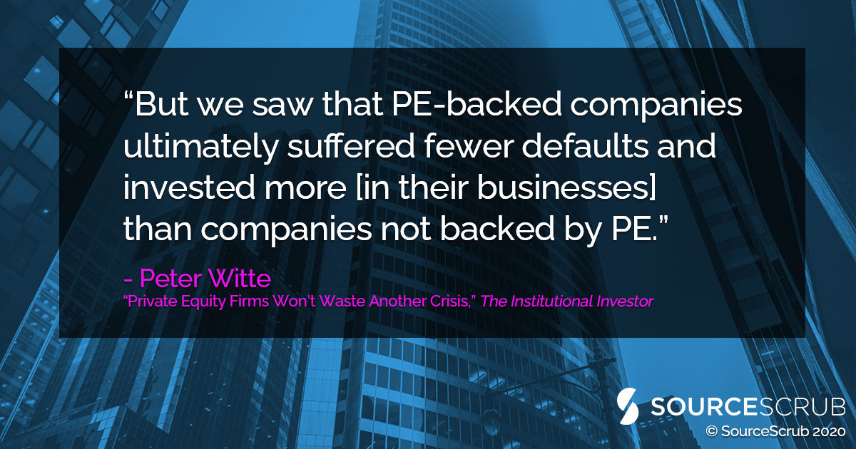 "The global financial crisis was the first real test of the private equity model. Could they refinance their existing portfolios, not to mention do new deals?" said Peter Witte, EY's global lead private equity analyst, in an interview with Institutional Investor. "There were concerns at the time. But we saw that PE-backed companies ultimately suffered fewer defaults and invested more (in their businesses) than companies not backed by PE."