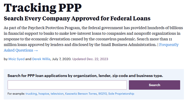 While the program ended in May of 2021, the data about who received loans is all public. The SBA itself has massive CSVs of PPP loan information available to the public, but there are also publications that make the PPP loan information searchable. Databases such as these let you search by a few different fields, including business name or even just industry.