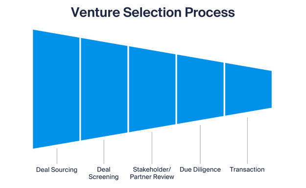 The deal flow process can differ from firm to firm and depends on each firm's particular processes and investment focus. But in general, it has five stages: